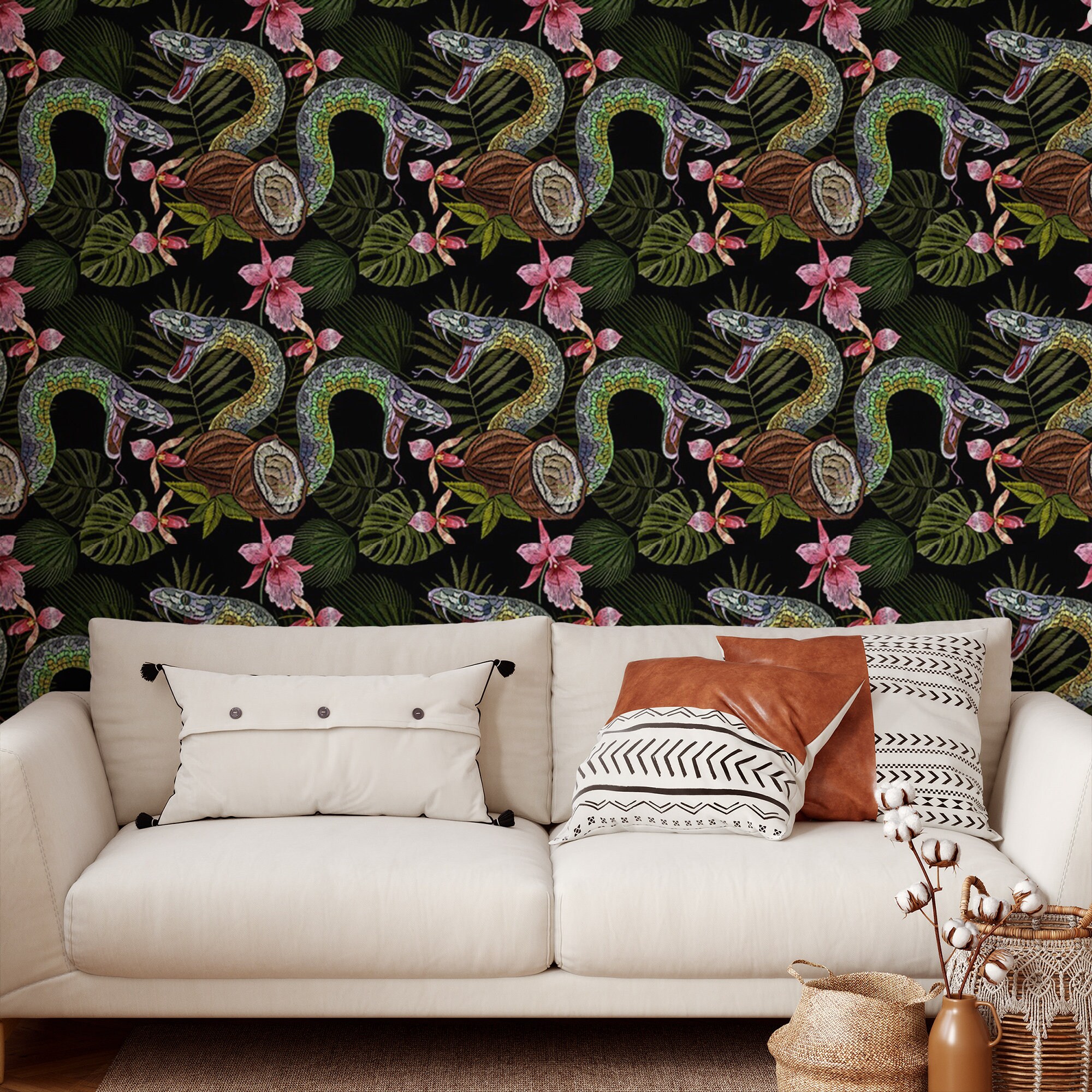 Buy Snakes And Flowers Removable Wallpaper Botanical Pattern Wall Online In India Etsy
